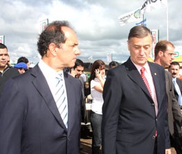 Foto 1: Julio Cobos en la Expoagro, detrás el Dip. Provincial Roberto Filpo.