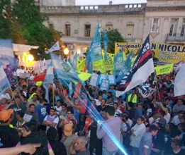 Sectores afines al Frente para la Victoria se convocaron en la Plaza Mitre para manifestar su apoyo a Daniel Scioli en el balotaje.