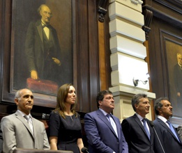 María Eugenia Vidal juró como gobernadora de la Provincia de Buenos Aires y recibió los atributos de mando de parte del jefe de Estado bonaerense saliente, Daniel Scioli, en el marco de la Asamblea Legislativa ante la cual también prestó juramento el vicegobernador Daniel Salvador.