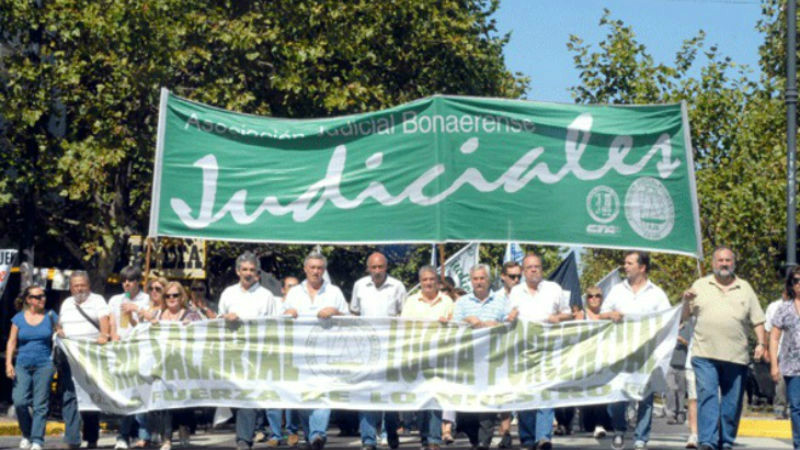 Trabajadores judiciales de la Provincia nucleados en la AJB anunciaron la convocatoria a un paro total de actividades para este lunes, en rechazo al “techo” salarial del 18% en cuotas, ofrecido por el gobierno de María Eugenia Vidal.