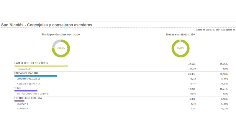 La lista de Cambiemos, con Mirna Botazzi a la cabeza, supera con un 7 por ciento a la de Unidad Ciudadana, que tuvo interna con Jaime y Maurino. De acuerdo a los datos oficiales de las PASO 2017, con el 96,69% de las mesas escrutadas, el oficialismo suma 35,66% de los sufragios posicionándose como la primera fuerza local.