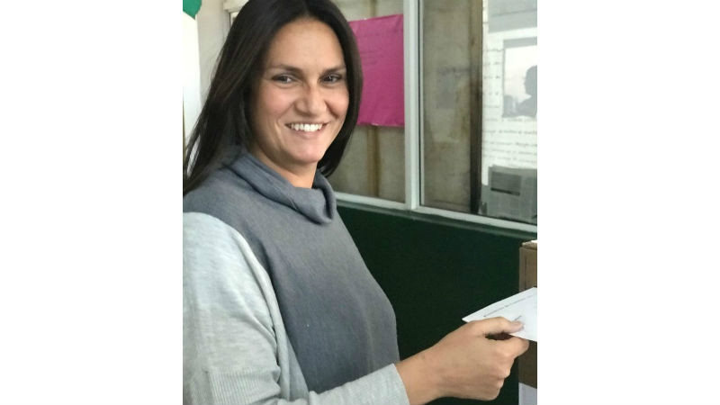 La candidata a concejal por el massismo, Florencia Vazquez cumplió con su deber cívico cerca del mediodía en el Colegio de Los Aromos.