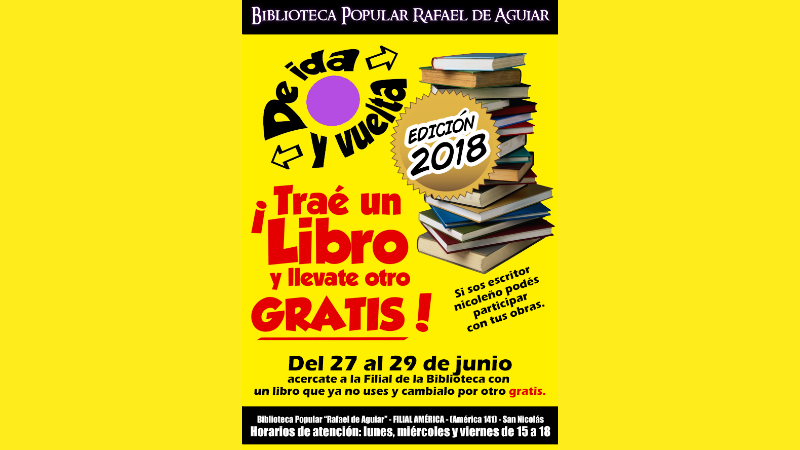 Desde el miércoles 27 al viernes 29 de junio se pueden acercar a la Filial, ubicada en calle América 141, con un libro que ya hayan leído o no usen o quieran canjear y cambiarlo por otro gratis.