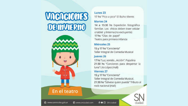 Se recomienda ingresar a www.snsemueve.com para enterarse de todas las propuestas organizadas para disfrutar la ciudad en familia durante las vacaciones de invierno.