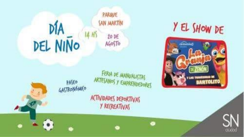 Este lunes 20 de agosto a partir de las 14 horas se realizará la celebración del Día del Niño en el Parque San Martín con el show oficial de La Granja de Zenón y las travesuras de Bartolito. Las entradas son gratuitas.