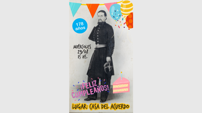 El miércoles 29 de agosto a las 15 hs. invitan a festejar el cumpleaños número 178 del artista con música, torta, chocolate caliente, arte e historia. Será en Sala de Lectura - Museo y Biblioteca Casa del Acuerdo, en De la Nación 143. con entrada gratuita.