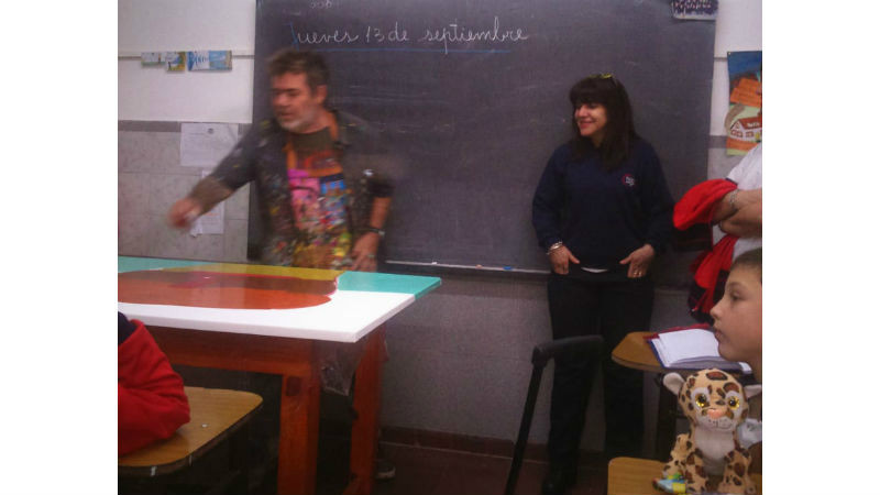 También firmó autógrafos, se sacó fotos con toda la comunidad educativa y les obsequió una de sus obra.