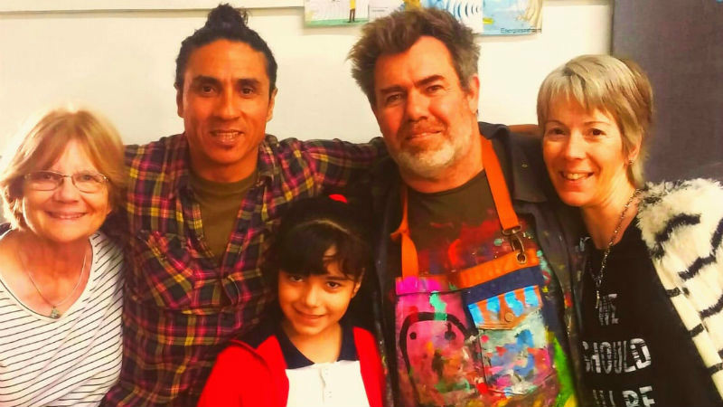 Se acerca la Semana de las Artes y en este marco el artista plástico Milo Lockett visitó el Instituto San Juan Bautista. Compartió la tarde con alumnos de 3° año A, la docente del curso, Virna, y directivos, Claudia Principiano y Patricia Polverigiani.