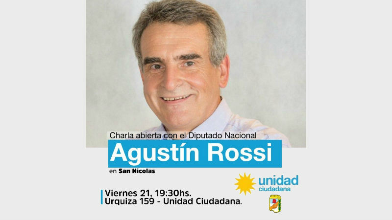 En el marco de una recorrida que Rossi viene realizando desde hace tiempo por distintas regiones, su visita a San Nicolás se centrará en la actualidad política y la crisis económica que atraviesa el país y el gobierno de Cambiemos.