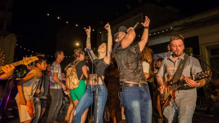 Desde temprano, los lugares empezaron a ocuparse tanto para cenar como para disfrutar del show de “Undercover” que llenó de música la esquina del Teatro Municipal mientras familias y amigos bailaban al ritmo de cumbia y cuarteto.