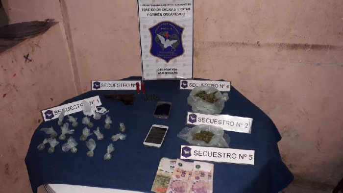 En total los elementos secuestrados fueron: cocaína, marihuana, una balanza de precisión, teléfonos celulares, $2.000 de dinero en efectivo; además de una pistola calibre 22, 12 cartuchos calibre 22, y dos cartuchos calibre 14.