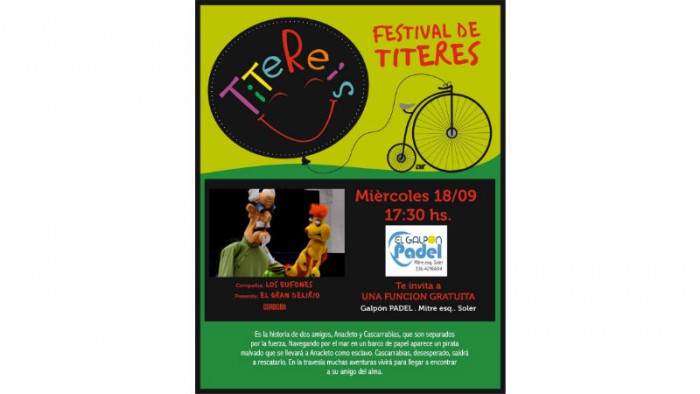 El Festival de Títeres “Titereís”continuará con show este miércoles 18 a las 17:30 en el Galpón Padel, ubicado en calle Mitre esquina Soler. La función es libre y gratuita.