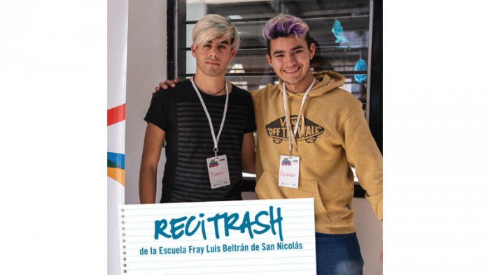 1- ReciTrash (Genaro Vallini y Tomás Rodrigo, alumnos del Instituto Fray Luis Beltran) --> ReciTrash consiste en un servicio de recolección de plásticos PET y PP, y el fundido y moldeado de piezas a partir de máquinas trituradoras y moldeadoras, para que luego puedan ser ofrecidas nuevamente al público en forma de distintos productos de uso cotidiano.
