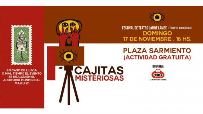 La renovada plaza Sarmiento será punto de encuentro este domingo 17 de noviembre del festival “Cajitas Misteriosas” organizado por el “Teatro de Títeres El Búho” para conmemorar los 30 años del teatro animación denominado “Lambe – Lambe”. Las actividades, libres y gratuitas para todo público, se desarrollarán desde las 16:00, con la participación de artistas y elencos provenientes de distintos puntos del país y el exterior.