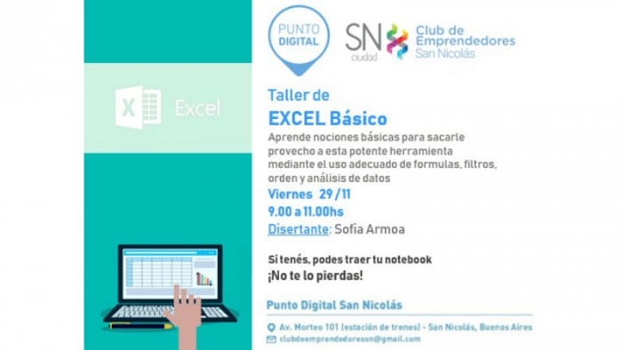 El viernes 29 de noviembre, de 9 a 11 hs., se dictará el Taller de Excel Básico para poder sacarle provecho a esta potente herramienta. El taller permitirá a los asistentes aprender el uso adecuado de fórmulas, filtros, orden y análisis de datos. La capacitación estará a cargo de Sofía Armoa y es abierto al público con entrada libre y gratuita.