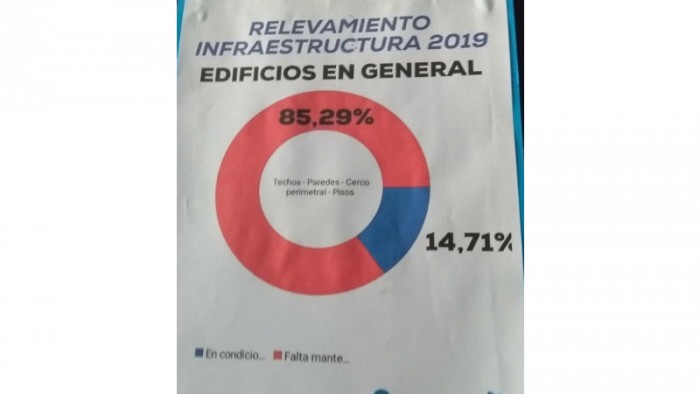 El resultado del informe representa las condiciones edilicias de las distintas escuelas nicoleñas. Instalaciones y equipos eléctricos, mobiliario, sanitarios y agua potable, son algunas de las problemáticas que aparecen en el trabajo realizado por SUTEBA.