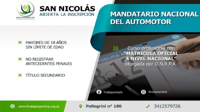 Mandatario del Automotor es un curso de validez nacional que emite la Matrícula que otorga la Dirección Nacional de los Registros de la Propiedad Automotor y Créditos Prendarios, dependiente del Ministerio de Justicia y Derechos Humanos de la Nación, dicha matrícula le permite al egresado presentar trámites ante los Registros del Automotor.