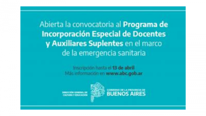 La Dirección General de Cultura y Educación de la provincia de Buenos Aires presentó un nuevo programa que convoca a docentes y auxiliares suplentes para sumarse a trabajar en las tareas ininterrumpibles que el sistema educativo lleva a cabo en el marco de la emergencia sanitaria actual.
