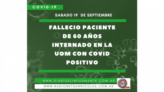 Falleció Daniel Manuel Duarte de 60 años. Se encontraba internado en la UOM desde el 10 de septiembre, con un cuadro de neumonía y Covid positivo