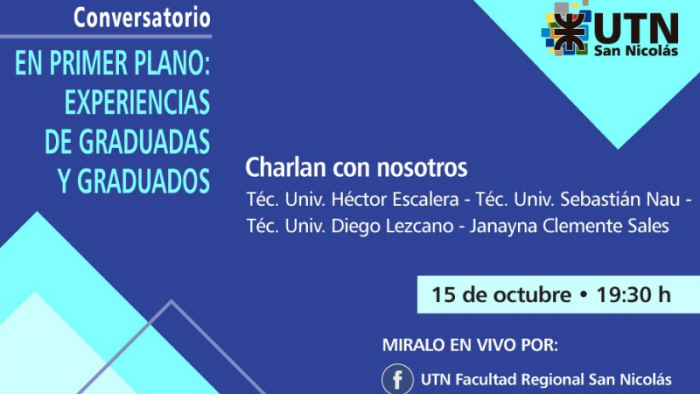 La UTN San Nicolás invita al tercer Conversatorio “En primer plano: experiencias de graduadas y graduados”, impulsado por la Subsecretaría del Graduado, dependiente de la Secretaría de Extensión Universitaria de la UTN San Nicolás.