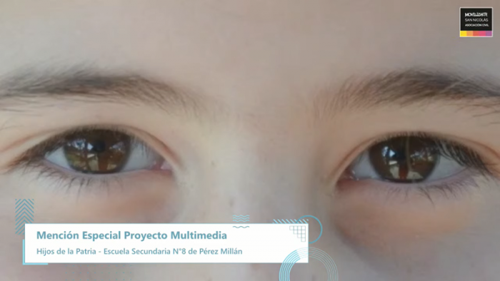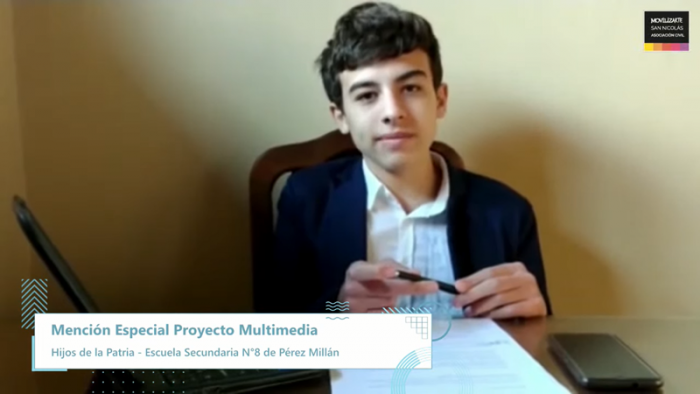 El premio por la Mención Especial a mejor proyecto Multimedia, fue para el grupo " Hijos de la Patria", integrado por Olivia Bartomioli, Agustina Dorado y Genaro Sotelo, de la Escuela de Educación Secundaria N°8 de Pérez Millán. Todos ellos, junto a su docente coordinadora Ana Leticia López, ganaron cada uno, un curso on line de marketing digital con Vitoria Becci.