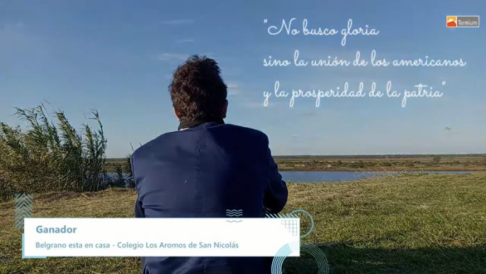 El primer puesto fue para el proyecto " Belgrano está en casa", realizado por Santiago Perié, del Colegio Los Aromos de San Nicolás. Tanto él como su docente Marcos Emiliano Zárate se ganaron una tablet cada uno y el colegio, un proyector.