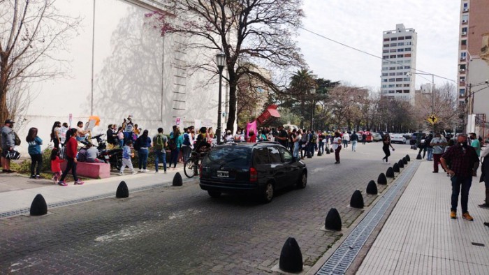 En horas del mediodía de este lunes, se reunió un nutrido grupo de personas en Mitre y Guardia Nacional, esquina del Palacio de Tribunales.