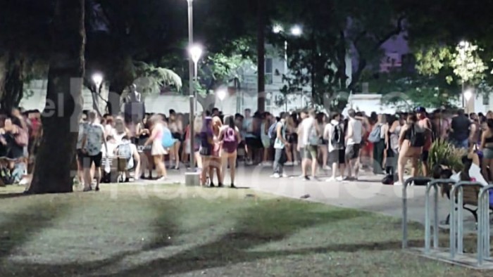 La plaza quedó colmada de botellas y suciedad tras los desmanes y festejos, y el poco descanso que pudieron tener los vecinos.