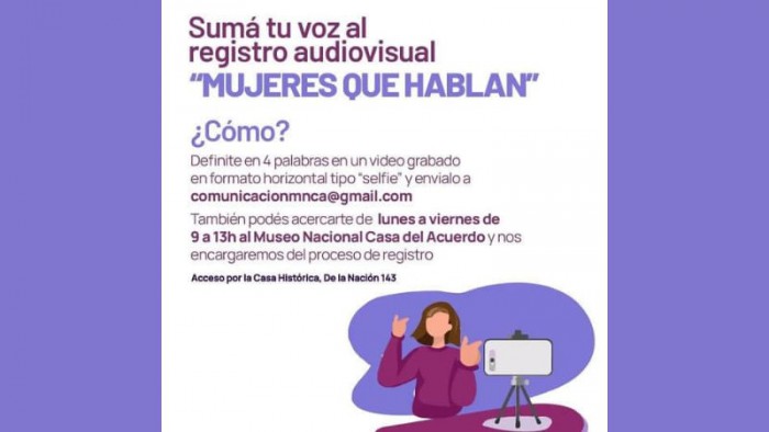 Desde este lunes 6 hasta el viernes 10 marzo de 9 a 13 horas, en el Museo Nacional Casa del Acuerdo invita a sumarse a un registro audiovisual "Mujeres que hablan".