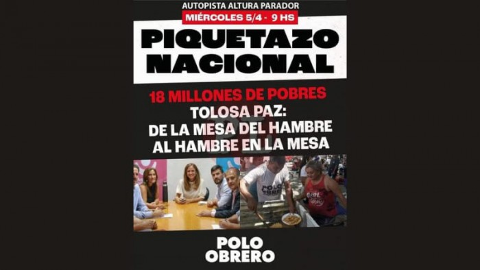 Este miércoles 5 de abril se llevará a cabo un “Piquetazo nacional” en todo el país y se replicará en San Nicolás. A partir de las 9hs realizaran un corte en Autopista altura parador.