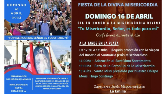 A partir de las 9hs. se realizará la tradicional Peregrinación San Nicolás-La Emilia con la imagen de la Virgen del Rosario hasta el Santuario Jesús Misericordioso de La Emilia.