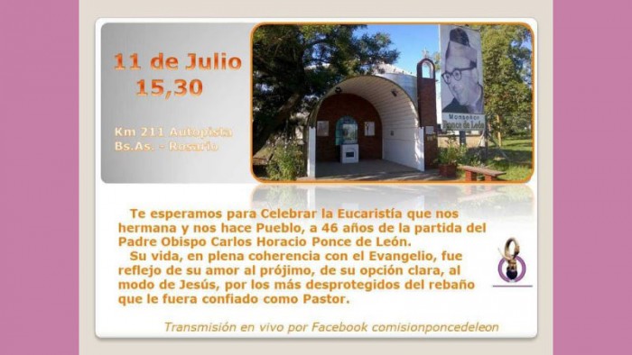 Los actos se centrarán el 11 de julio, en el lugar donde se recuerda el martirio del tercer Obispo de San Nicolás en 1977, la Ermita de Ruta 9 Km 211.