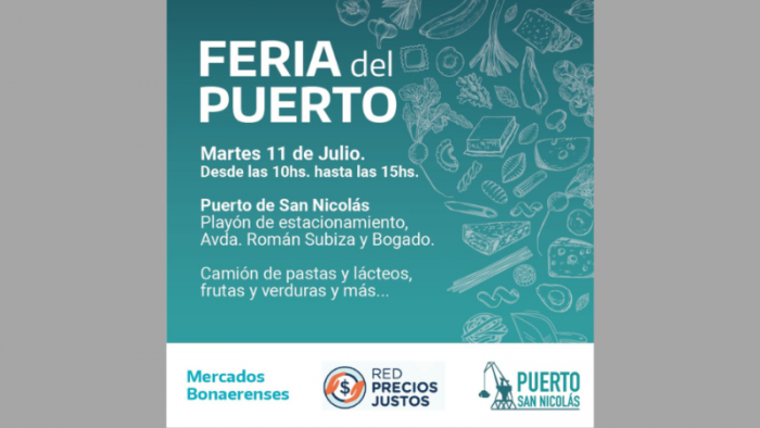 El martes 11 de julio desde las 10 a las 15 hs. se llevará a cabo la “Feria del Puerto” en el playón de estacionamiento del Puerto de San Nicolás (Avda. Román Subiza y Bogado).