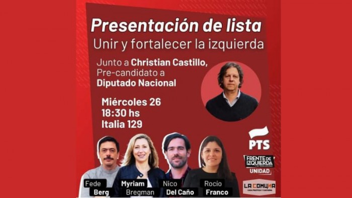 El precandidato a Diputado Nacional por Frente de Izquierda Unida de los trabajadores, Christian Castillo, visitará San Nicolás este miércoles 26 de julio. Estará junto a Federico Berg, precandidato a intendente y presentarán la lista que encabezan a nivel nacional Myriam Bregman y Nicolás del Caño, precandidatos a presidenta y vicepresidente.