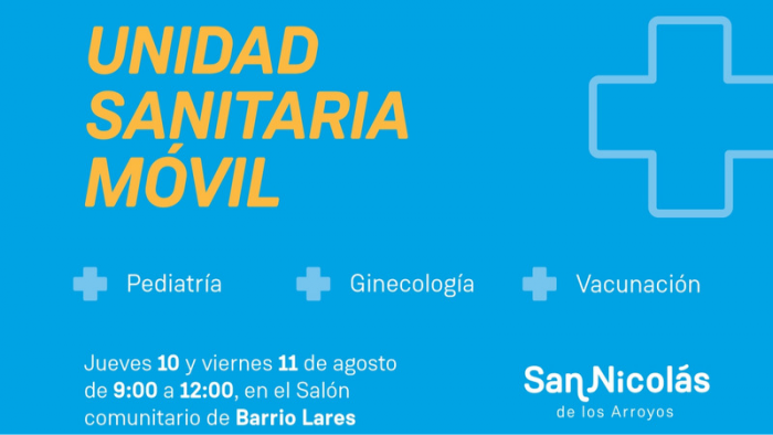 La Municipalidad de San Nicolás informa que durante el jueves 10 y viernes 11 de agosto de 9:00 a 12:00 el tráiler de Salud estará en el salón comunitario de barrio Lares, ubicado en la esquina de Reynoso y San Juan.
