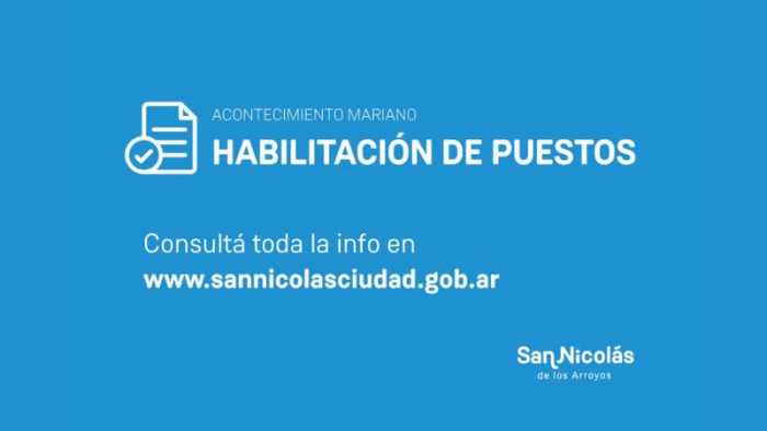 La Municipalidad de San Nicolás informa que el próximo viernes 15 de septiembre es la fecha límite para presentar el formulario que permitirá la habilitación de puestos ambulantes durante el aniversario del acontecimiento mariano.