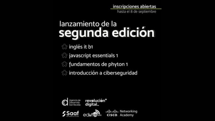 Hasta el viernes 8 de septiembre se encuentra abierta la inscripción para la segunda edición de los cursos CISCO a través del Programa Revolución Digital, perteneciente a la Municipalidad de San Nicolás.