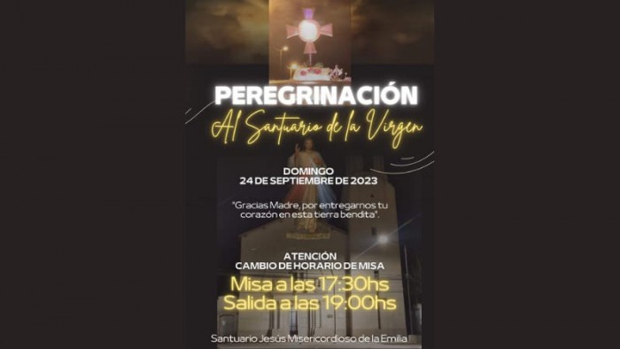 La misa será a las 17.30hs en el Santuario Jesús Misericordioso de La Emilia y luego a las 19.00hs iniciará la peregrinación.