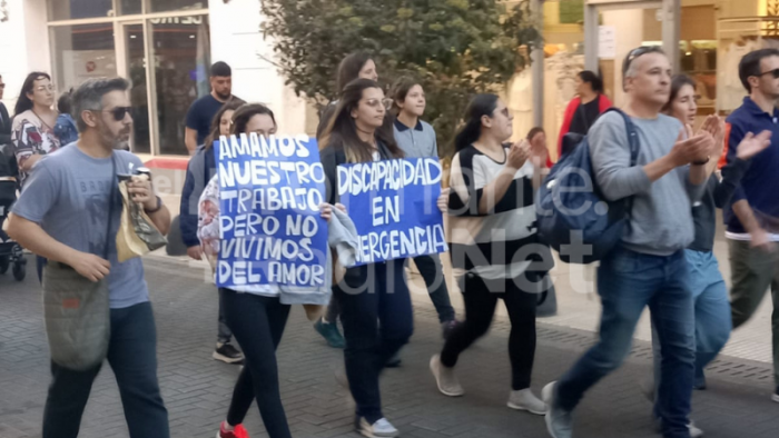 Un importante grupo de profesionales que atienden a personas con discapacidad, se manifestaron en la horas de la tarde en el centro de la ciudad adhiriendo al paro nacional.
