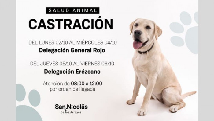 El tráiler de castración de la Municipalidad de San Nicolás atenderá desde el lunes 2 al miércoles 4 de octubre en la Delegación de Gral. Rojo y del jueves 5 al viernes 6 de octubre en la Delegación de Erézcano. La atención será gratuita y por orden de llegada en el horario de 8:00 a 12:00.