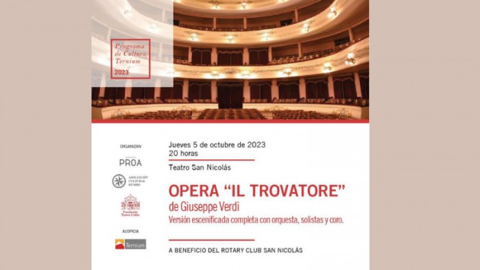 El nuevo espectáculo de Cultura Ternium está generando mucha expectativa entre los amantes de la ópera y la música en nuestra cuidad. "Il Trovatore" es presentado por Fundación PROA y la Asociación Cultura RUMBO, en el marco del ciclo cultura que se propone traer al Teatro propuestas musicales y artísticas seleccionadas.