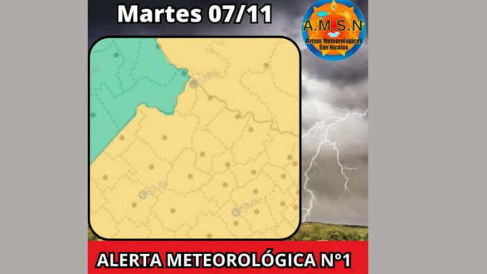 Alerta meteorológica emitida por el Servicio Meteorológico Nacional.