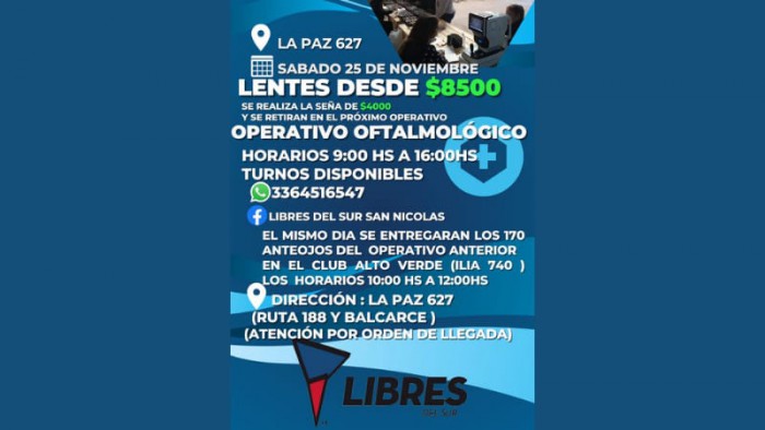 Libres del Sur organiza nuevamente el servicio de venta de anteojos a precios accesibles y la entrega de los tramitados en el operativo anterior.