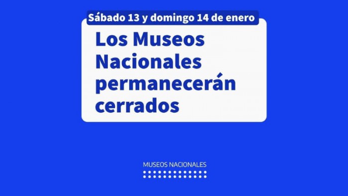 Los Museos Nacionales estarán cerrados los días sábado 13 y domingo 14 de enero como consecuencia de la decisión de la Jefatura de Gabinete de Ministros de suspender los servicios extraordinarios. Esta medida aplaza la realización de tareas fuera del horario administrativo, afectando a los trabajadores e impidiendo la atención al público. En la temporada de vacaciones, cerca de 20 mil personas visitan los Museos Nacionales durante los fines de semana.