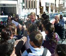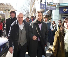 A las 13.15 arribaron a la Plaza Mitre el candidato a Diputado Nacional por Unión PRO, Francisco De Narváez acompañado por el Jefe de Gobierno Mauricio Macri. Los aguardaban militantes y chicas simpatizantes. Macri ofreció una conferencia de prensa en el bar El Poeta junto al Dr. Ismael Passaglia, mientras que De Narváez caminó por Mitre junto a Ignacio Mateucci, sin hacer declaraciones. Las funs generaron interrupciones en el tránsito y sonreían frente a la humorada del candidato cuando les decía: “Votame… Votate”.