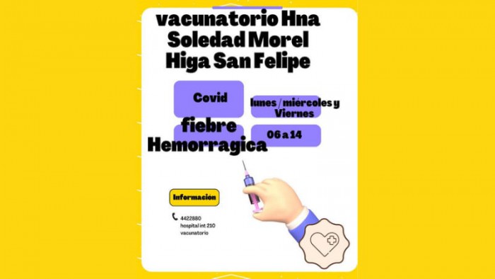 El vacunatorio Hna. Soledad Morel Higa San Felipe informa los días y horarios de atención: