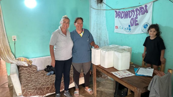 Entregaron 200 litros de hipoclorito a 4 barrios, entre ellos San Francisco, Las Mellizas, Mosconi y Colombini para facilitar las acciones de desinfección.