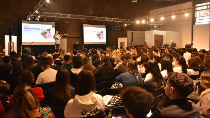 Espacio MOV se colmó de estudiantes de 16 a 19 años de diferentes escuelas de la ciudad y sus docentes, en lo que fue una jornada enriquecedora que despertó el interés y la curiosidad de los presentes. La capacitación duró 3 horas y luego se abrió un espacio de preguntas y respuestas. Los más de 190 asistentes pudieron comenzar a descubrir el gran potencial del podcast a través de la Masterclass que permitió recorrer tipos de podcast, estructura narrativa y mucho más.
