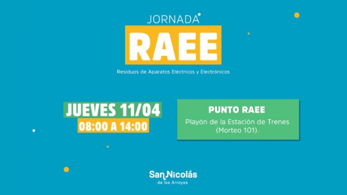 La Municipalidad de San Nicolás realizará este jueves 11 de abril, una nueva campaña de recolección de Residuos de Aparatos Eléctricos y Electrónicos (RAEE).
