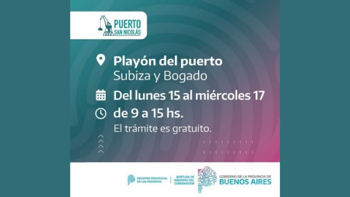 Del lunes al miércoles próximo, los vecinos de la ciudad podrán realizar trámites de manera gratuita ante el Registro Provincial de las Personas, que dispondrá un tráiler en el playón de la sede administrativa portuaria.